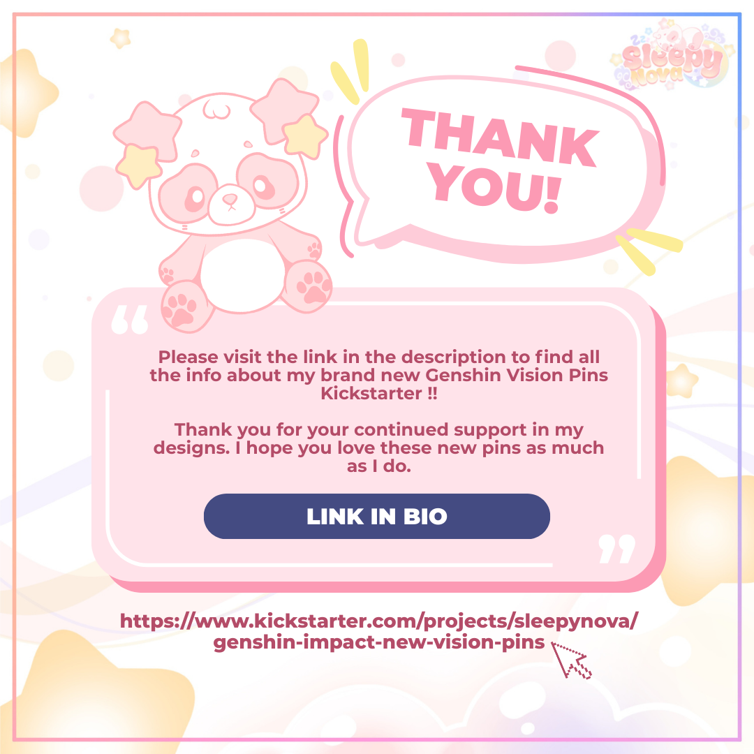 Thank you so much to everyone who loves my designs, shares the project, or supports the campaign in any way. My dream is to make these new Genshin pins come to life. I love this game and all of its characters so much. Any support you will give to the project is greatly appreciated. I hope we can make them all. Thank you!!
